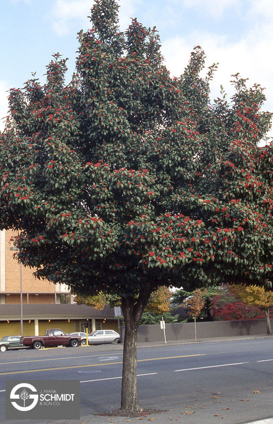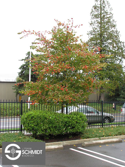 | Crataegus x lavallei - The tree grows 20 feet high and wide and has a rounded form and very dense canopy. |