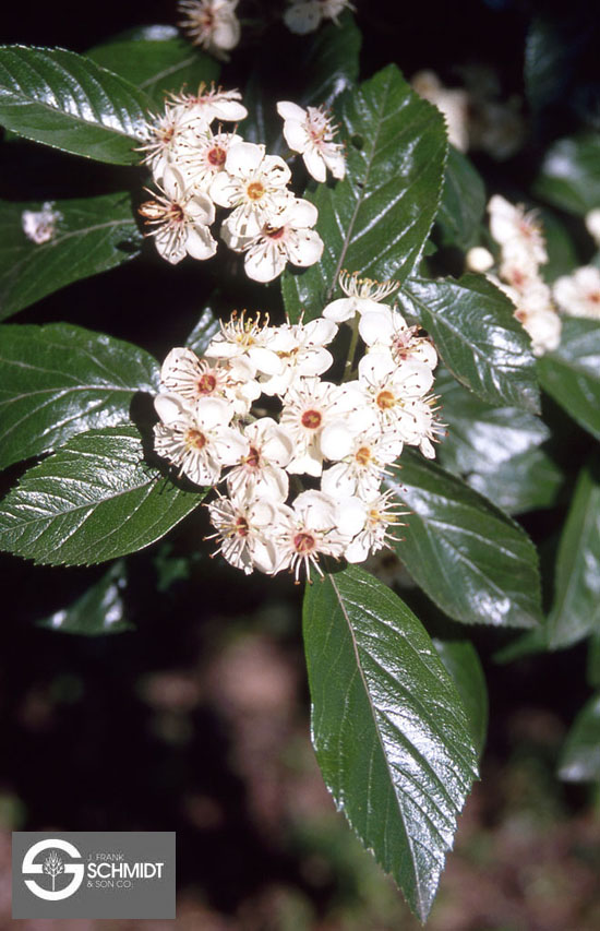 | Crataegus x lavallei - The small white flowers form in corymbs that are 2-3 inches wide. |