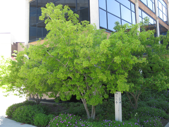 | Samaras are plentiful on the tree and the wings of the samaras are reddish in color. Image: Wikipedia.org | Acer ginnala is typically found in multi-stem form. |