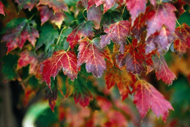 | Red Maple is a large shade tree that is famous for its fall color. | In the fall, the leaves turns an extremely bright red. |