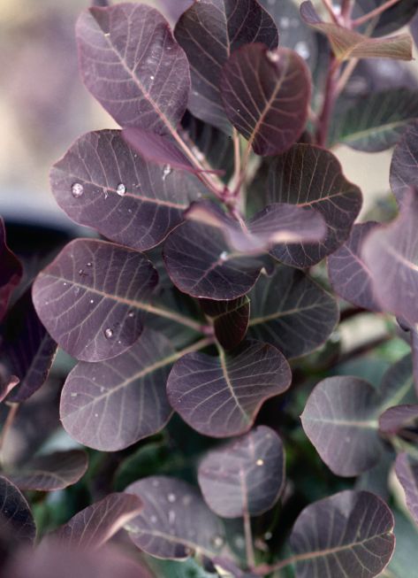 | The leaf of Cotinus coggygria is almost round in form. It has a smooth margin and is arranged alternately on the stem. Image: Derek Ramsey | Smokebush is famous for its plumes of flowers and seeds that resemble smoke, thanks to the thing long petioles. |