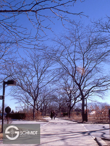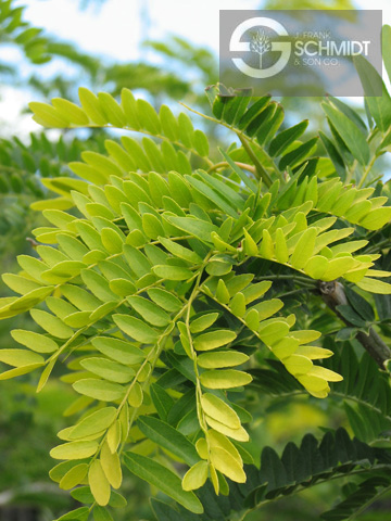 Gleditsia triacanthos inermis is a hardy and fast growing tree that is able to tolerate a wide range of soil and moisture conditions. At maturity it will reach 50-60 feet tall, with and equal spread. It has a broad and open branching habit, with young branches often exhibiting a zig-zag appearance. The bark is gray-brown in color and develops large furrows when it matures.