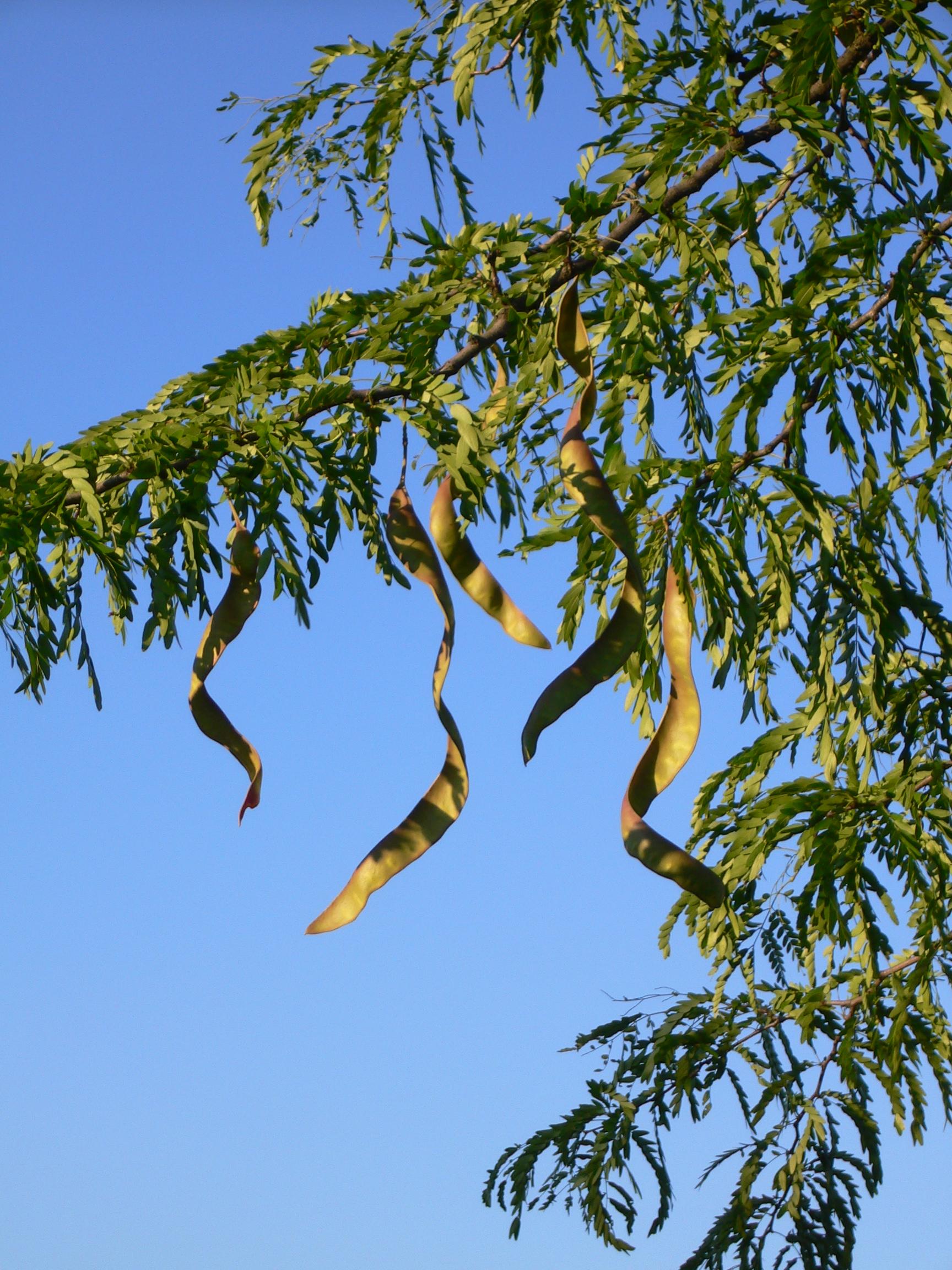 In late spring, panicles of greenish-white blossoms appear on the tree. Though they are not visually stimulating, they do have a strong, sweet fragrance. By summertime, large pea-pod seeds (7-8 inches long) begin to form on the tree. In the fall, these turn a dark brown color and will fall from the tree. They can be messy, but fortunately many of the new cultivars produce few seeds.