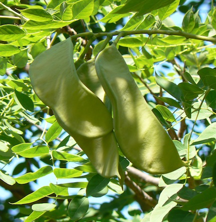 | The leaf is bipinnately compound and can be up to 3 feet in length. | Leathery seed pods appear during summer and ripen to a red-brown color in the fall. |