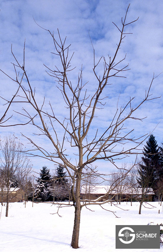 | Coffeetree is a large and upright shade tree. | It has a picturesque branching pattern and form that is best visible during the winter. |