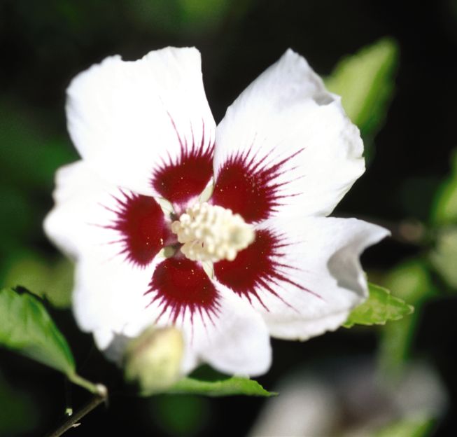 | The bright green leaf is three-lobed and palmately veined. It has an irregularly serrated margin. | The flower are 2-4 inches wide and have five petals or double blooms. They bloom at the end of summer and into fall. |