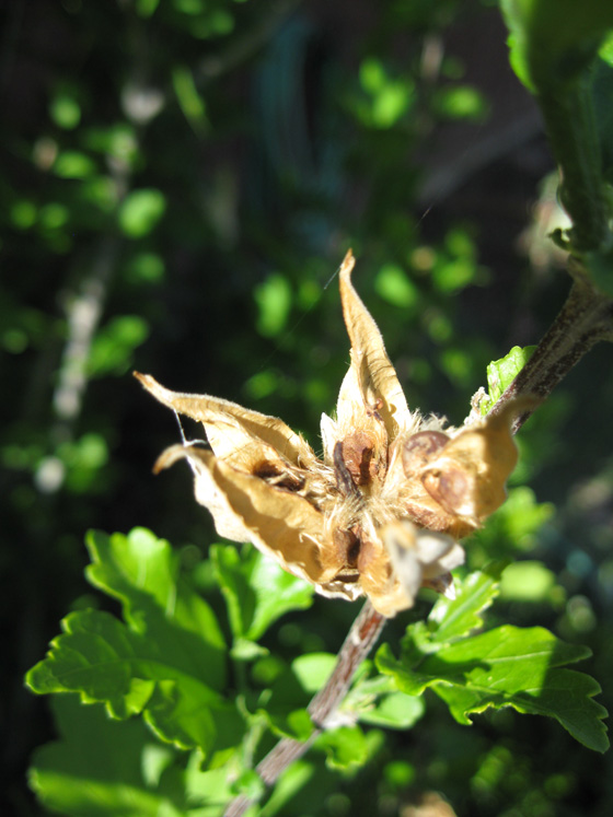 The fruit appears as a brown capsule. It is cone-shaped with a rounded base, and eventually bursts open to create a 5-pointed star shape. I think that the seed capsules are somewhat ornamental because of their unique and geometric shape.