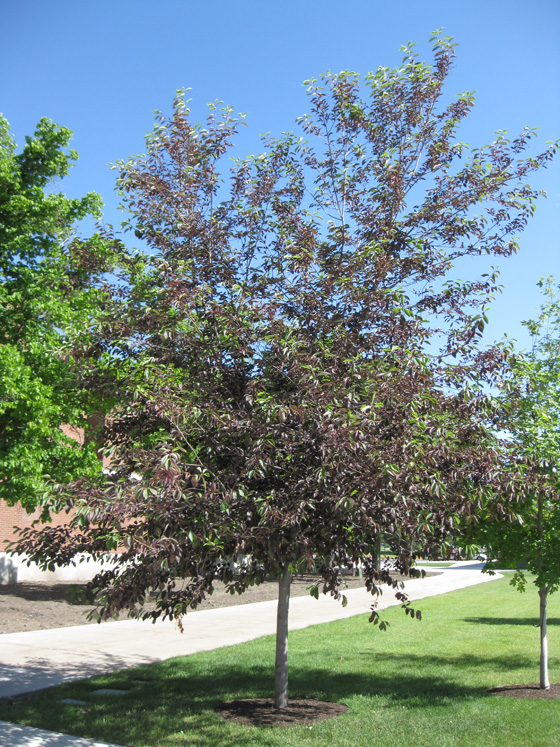 The most popular variety, it grows 20-25 feet tall with purple foliage throughout most of the summer. New foliage emerges green.