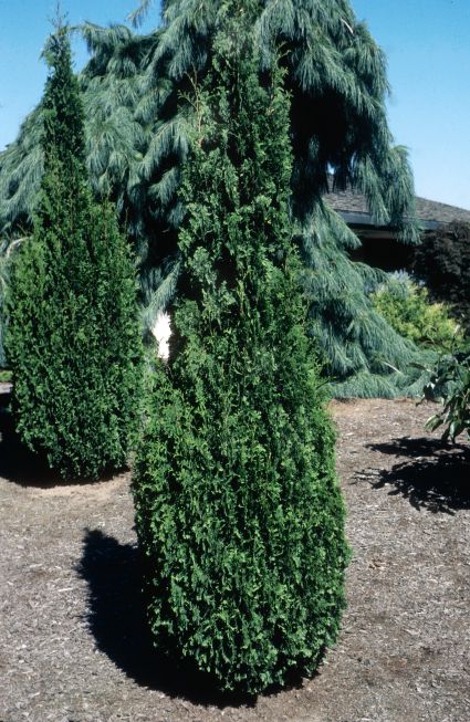 This smaller cultivar has a strong pyramidal form and good bright green foliage that it retains through the winter. Grows 5-6 feet tall and 2-3 feet wide.