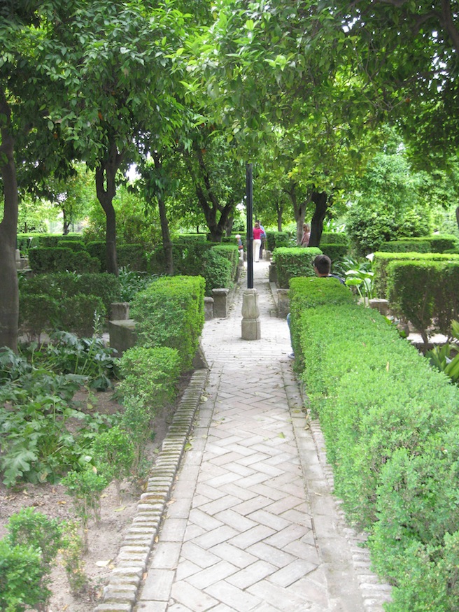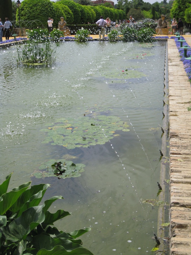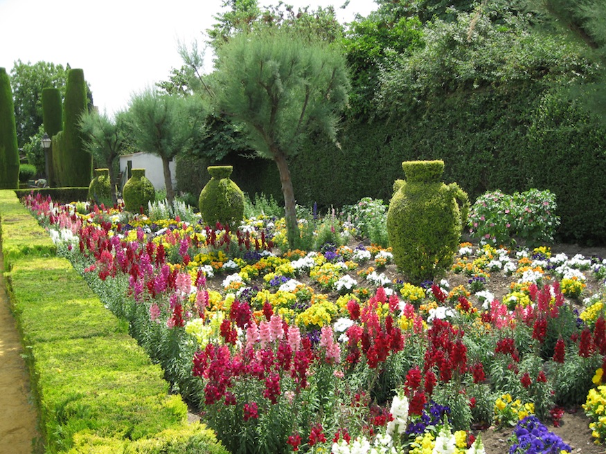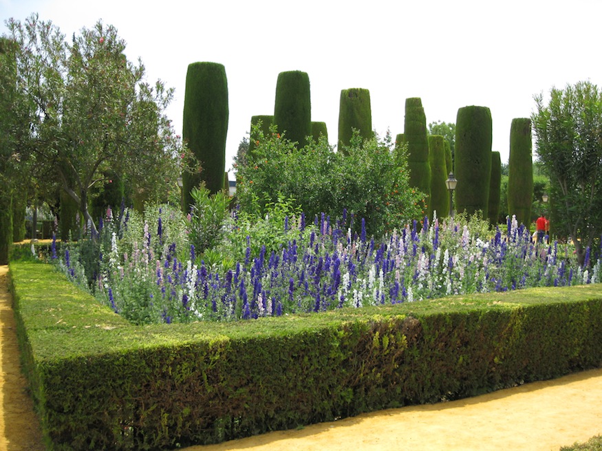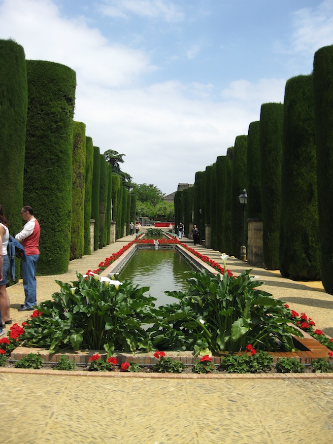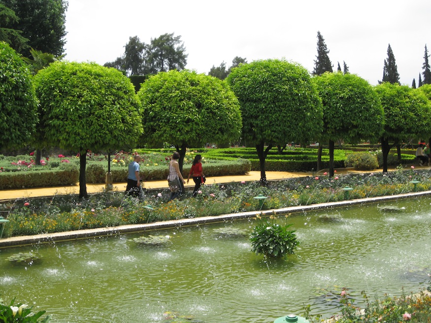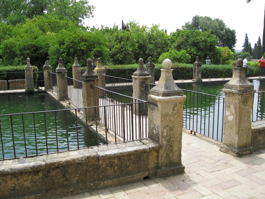 The Alcázar de los Reyes Cristianos is a medieval castle located in Córdoba, Spain. It is famous for being the location from which the Spanish monarchs bid farewell to Christopher Columbus prior to his voyage of discovery in 1492. Immediately adjacent to the castle is the historic section of the gardens, combining elements of both Moorish and Mudéjar design. The expansive water gardens are laid out in a Mudéjar style, but are modern additions to the site.